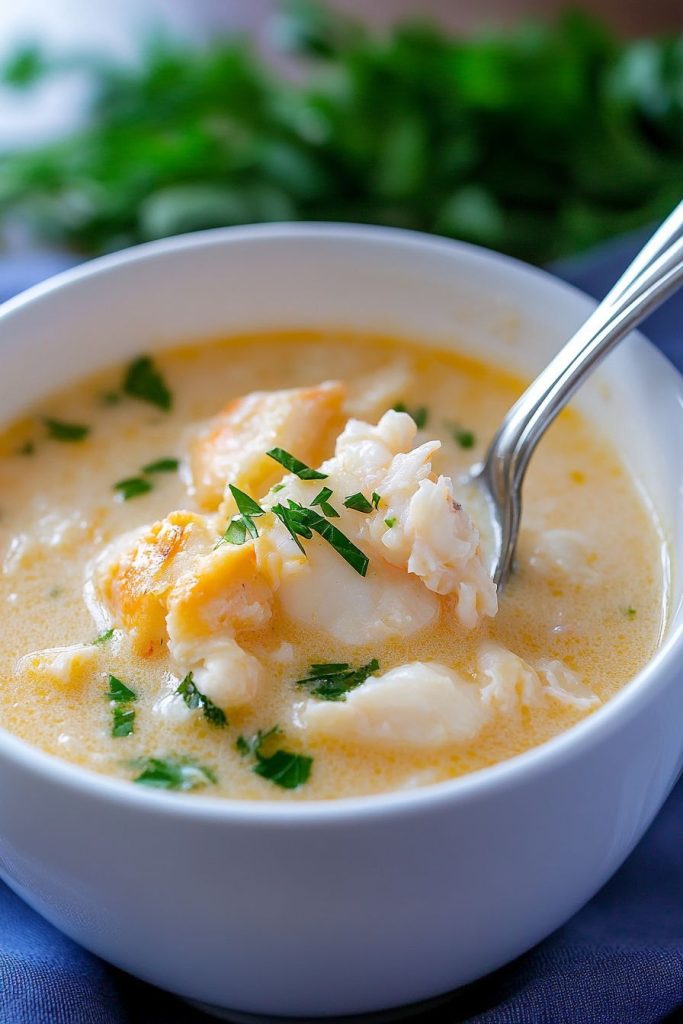 Ladle into bowls, garnish with fresh parsley or chives, and sprinkle lightly with extra Old Bay if desired.