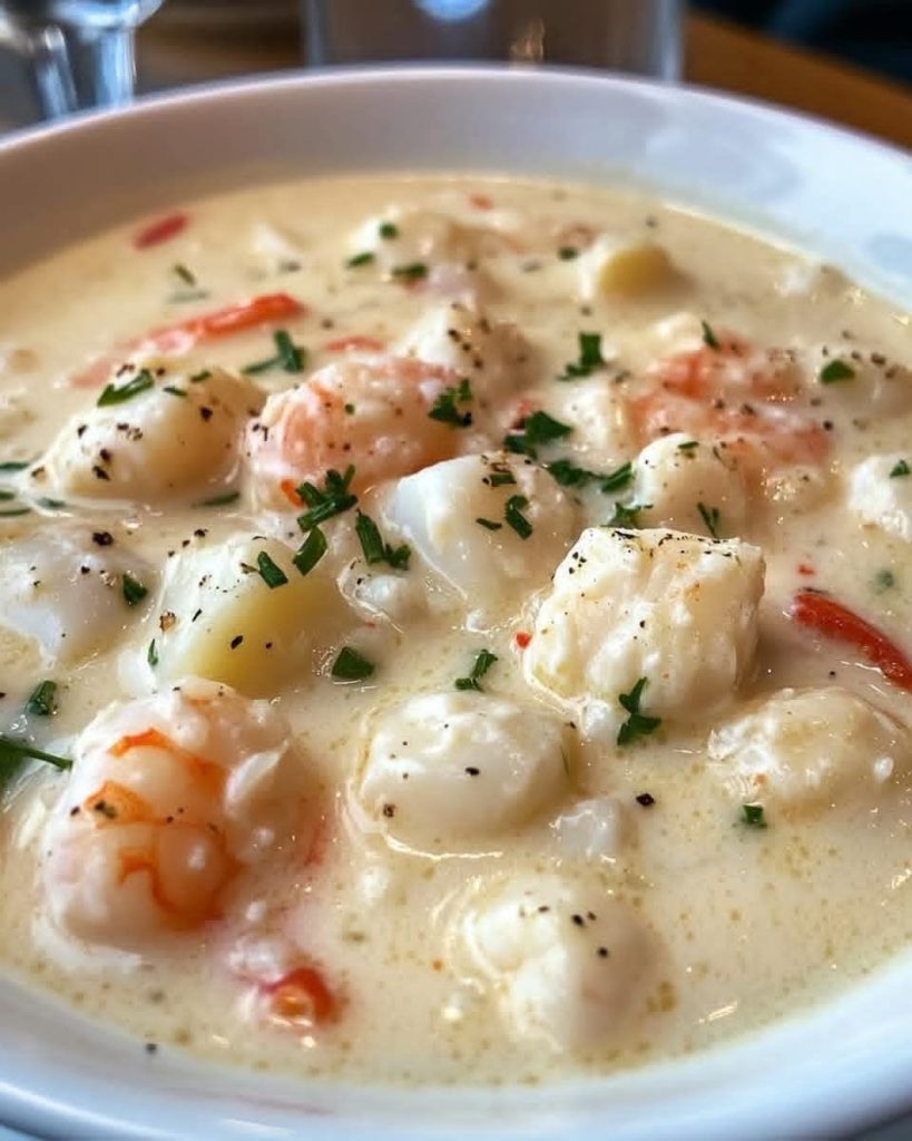 This chowder is adored for its balance of luxury and comfort. The velvety cream base wraps around chunks of perfectly cooked seafood, creating an indulgent, restaurant-quality dish that feels homemade and heartfelt. Its charm lies in simplicity — fresh ingredients, gentle seasoning, and a focus on the natural sweetness of the sea.
