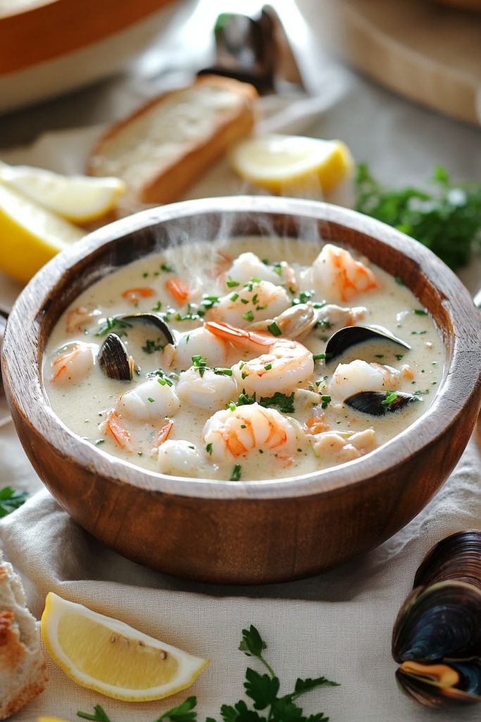 Picture this: a rich, velvety broth that whispers of the sea, brimming with plump shrimp, tender scallops, succulent mussels, and flaky white fish. This isn’t just soup; it’s the Ultimate Creamy Seafood Chowder, a dish so comforting and irresistibly luxurious that it instantly transports you to a cozy seaside cottage. Forget those thin, watery versions; this recipe delivers a restaurant-quality, deeply flavorful chowder that is surprisingly simple to make at home. Whether you’re a seafood aficionado or simply seeking a spectacular meal, this chowder is guaranteed to be a showstopper. It’s the perfect blend of rustic warmth and gourmet elegance, making it a fantastic choice for a casual weeknight dinner or an impressive holiday starter. Get ready to create a masterpiece that your family and friends will rave about—a true bowl of liquid gold.