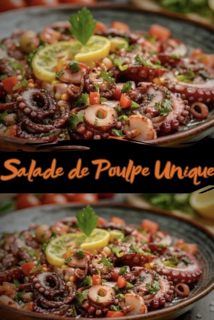 Salade de Poulpe Unique is a bright, Mediterranean-inspired dish that showcases tender poultry (poulpe / octopus) tossed with crisp vegetables and a zesty lemon-olive oil dressing. This salad is irresistible because the octopus — when cooked gently — becomes meltingly soft and perfectly complemented by the acidity of lemon, the richness of extra virgin olive oil, and the crunchy contrast of peppers and onion. It’s an elegant starter, a light main, or a beautiful addition to any seafood spread.