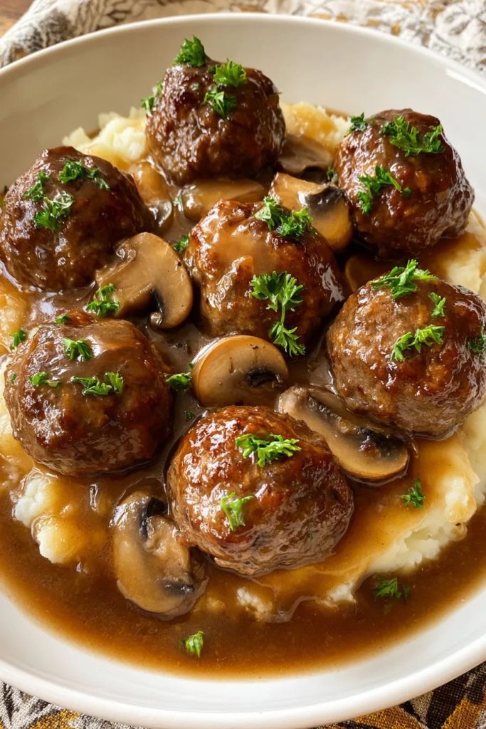 🥨 Homestyle Salisbury Steak Meatballs with Mushroom Gravy: The Ultimate Comfort Food