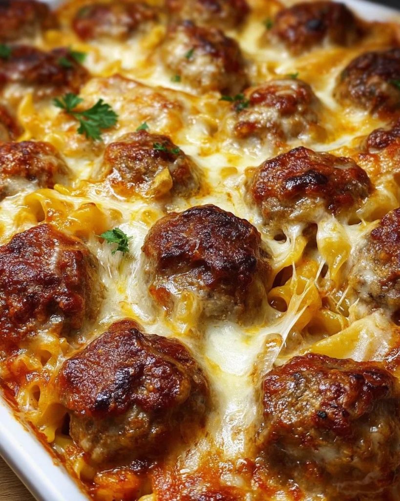 Experience the magic of molten cheese, savory meatballs, and perfectly baked pasta in one incredible dish.