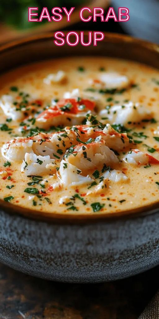To turn this Easy Crab Soup into a full culinary experience, pair it with warm sourdough bread for dipping, or a crisp Caesar salad to cut through the richness. Always garnish liberally with fresh parsley and a dash of smoked paprika right before serving.