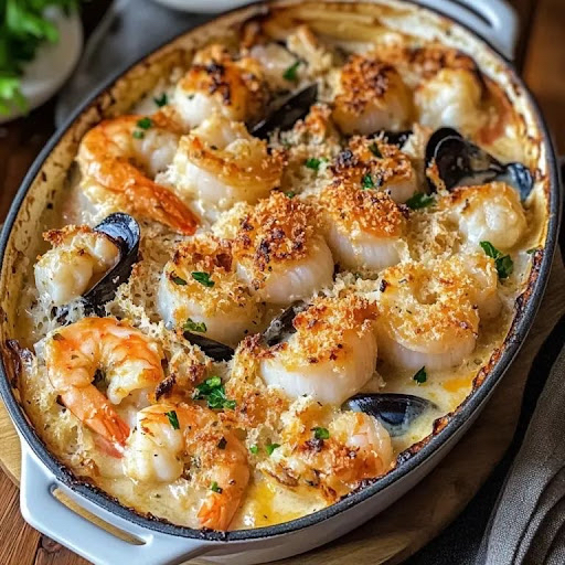 Imagine a dish that captures the very essence of the ocean, bathed in a velvety garlic cream sauce and topped with a golden, buttery breadcrumb crust. This Seafood Gratin is more than just a meal; it is an experience. It brings together succulent jumbo shrimp, tender sea scallops, and delicate mussels in a harmonious bake that balances richness with the fresh, briny notes of high-quality shellfish.
