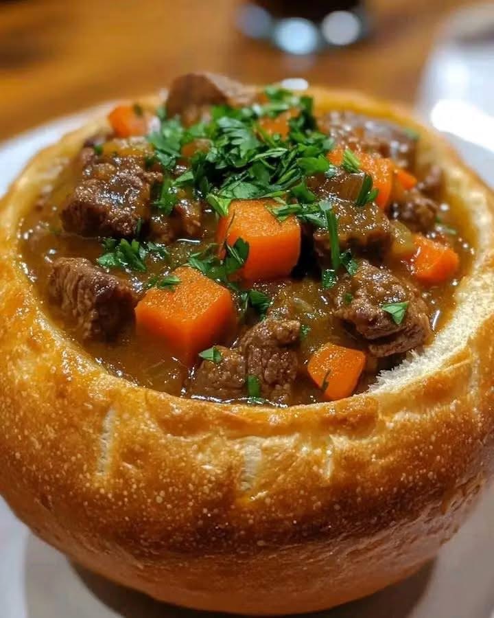 The Ultimate Hearty Beef Stew in a Crusty Sourdough Bread Bowl | Gourmet Recipes