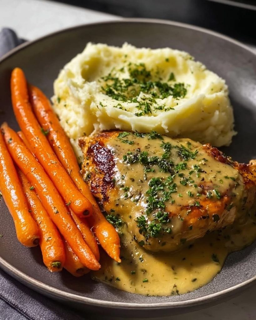 There is nothing quite as comforting as a plate of perfectly seared chicken, nestled alongside velvety mashed potatoes and honey-glazed roasted carrots. This dish is the epitome of high-end comfort food—a sophisticated meal that balances the acidity of fresh herbs with the deep, savory umami of a rich garlic herb gravy. Whether you are hosting a dinner party or seeking a gourmet weeknight dinner, this recipe guarantees a succulent, golden-brown finish that will leave your guests begging for seconds.