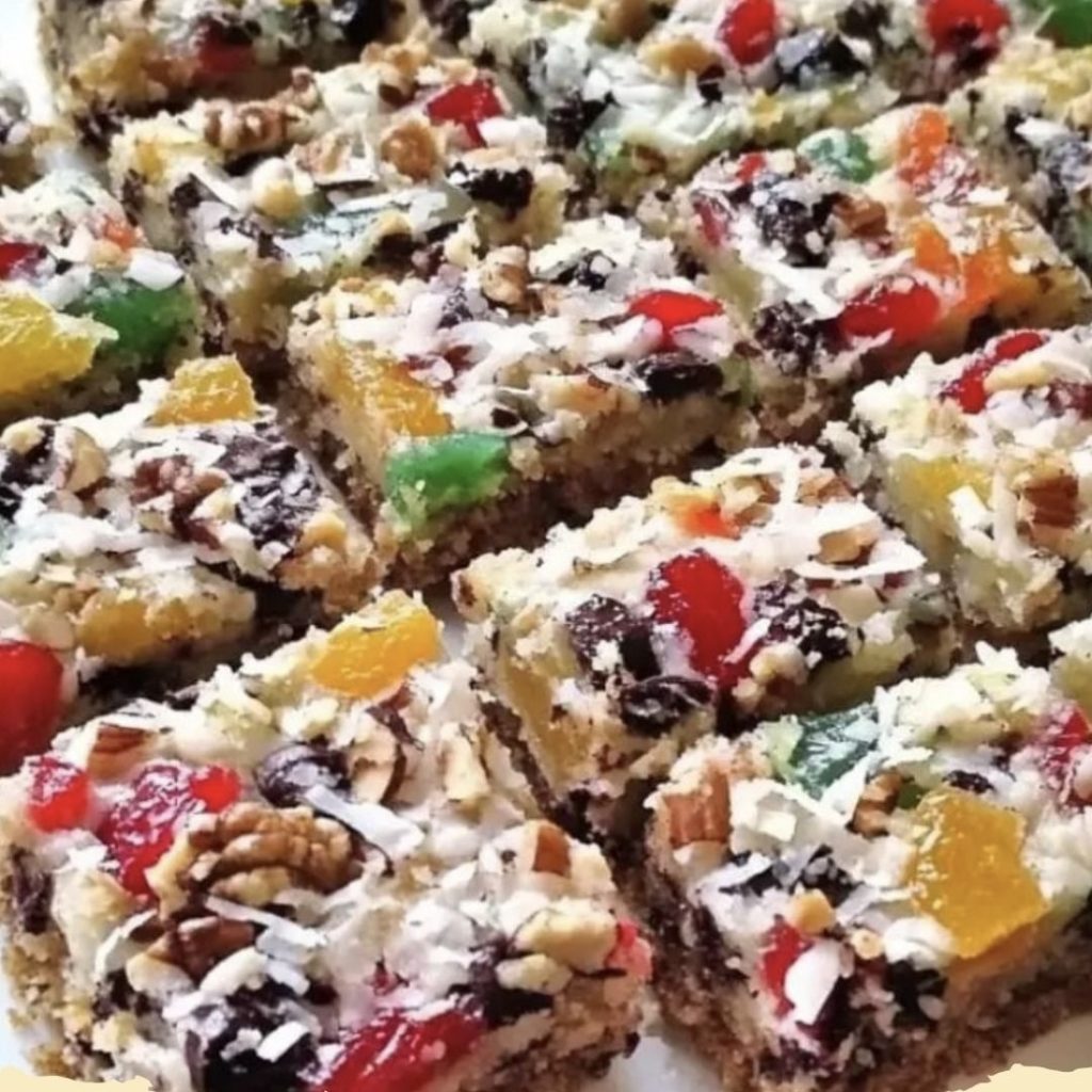 These bars are irresistible because they strike the perfect balance between chewy, crunchy, and buttery. They are the ultimate “jewels” of the dessert table—bright, colorful, and packed with festive flavor. Whether you are looking for the perfect holiday gift, a standout potluck dessert, or a sweet treat to pair with your afternoon coffee, this recipe is designed to impress even the most skeptical fruitcake critics.