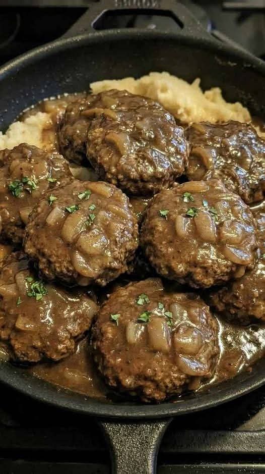 Salisbury Steak with Garlic Mashed Potatoes and Mushroom-Onion Gravy is the kind of classic comfort food that instantly feels like home. Juicy, pan-seared beef patties smothered in a deeply savory mushroom and onion gravy, served over creamy, buttery garlic mashed potatoes—this dish delivers bold flavor, nostalgic warmth, and pure satisfaction in every bite. It’s hearty without being heavy, simple yet luxurious, and endlessly comforting. Whether you’re cooking for family, guests, or just craving a cozy homemade dinner, this recipe is guaranteed to impress.