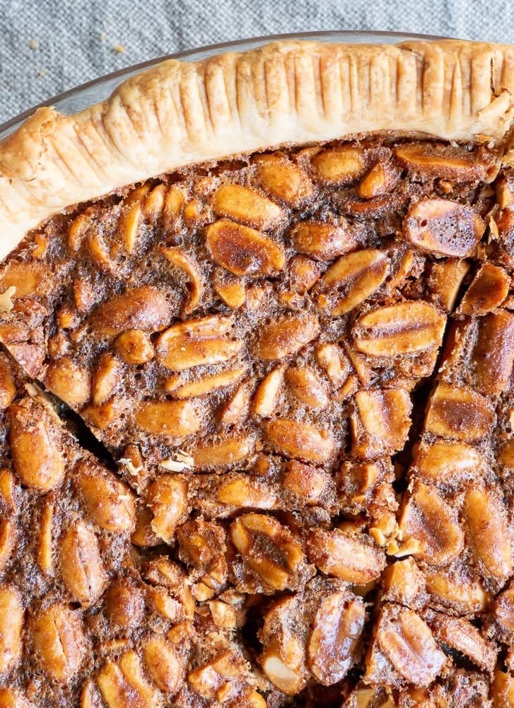- Prep the Oven and Crust: Preheat your oven to 350°F (175°C). Fit your pie dough into a 9-inch pie plate, crimping the edges for a decorative look. Place the roasted peanuts evenly across the bottom of the unbaked crust.