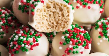 Christmas Rice Crispy Treats (White Chocolate Rice Krispie Balls) Christmas Rice Crispy Treats: White Chocolate Rice Krispie Balls with Holiday…